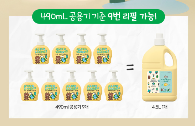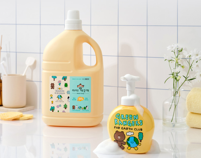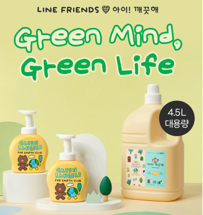 아이깨끗해 핸드워시 4.5L 대용량 리필+라인프렌즈 490ml 공용기 2개 : 라이온코리아 브랜드스토어