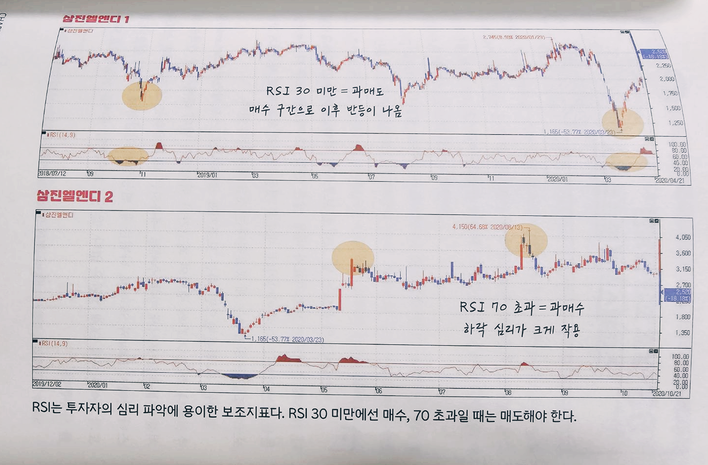 30미만은 매수 70초과는 매도 기준으로 보면 되죠.