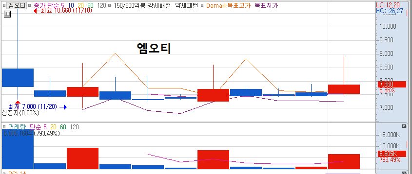 엠오티는 상장가 1만원이었는데 11영업일 기준 7천원대 중후반 가격을 유지하고 있어요.